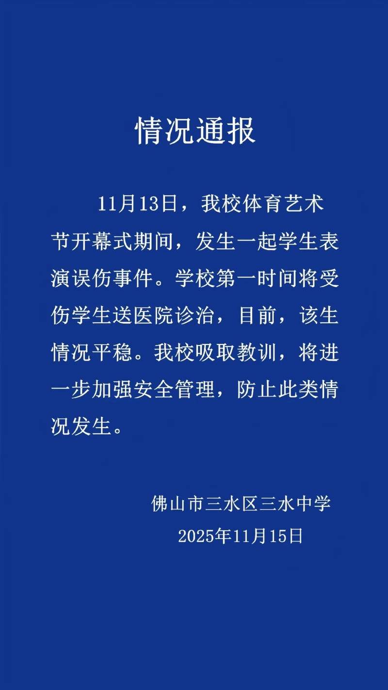 2025年11月15日2025年11月15日吃瓜热门 广东佛山女学生面部被箭射中?校方回应 – 新京报 bat365在线平台官网 对“广东佛山女学生面部被箭射中?校方回应 – 新京报”作出评论 新京报11月15日,佛山市三水区三水中学官方微信发布情况通报。内容如下:11月14日,有网友发帖称,广东省佛山市某高中运动会开幕式上,一名学生被箭射中。据目击者称,一名学生在开幕式上练习射箭时脸部中箭。李依林吉编辑